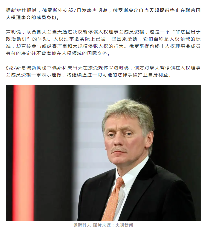 聯(lián)合國(guó)大會(huì)暫停俄羅斯人權(quán)理事會(huì)成員資格